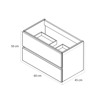 Met 60 cm breedte is deze wastafelonderkast geschikt voor kleinere badkamers. greige geeft een zachte, neutrale uitstraling en combineert goed met lichte meubels en wandkleuren. Het compacte formaat houdt de ruimte overzichtelijk terwijl er voldoende opbergruimte is.
