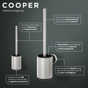 Tiger Cooper toiletborstel met houder RVS geborsteld / Zwart