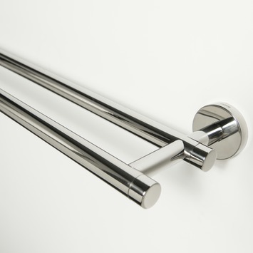 Het Tiger Dubbel Handdoekrek Boston Chroom van de accessoire serie Boston is uitgevoerd in glanzend RVS, en is ook verkrijgbaar in geborsteld RVS. Dit product kan aan de wand worden geschroefd, maar kan ook met behulp van Tigerfix 1 op een gladde en harde ondergrond geplakt worden. Je hoeft dus niet te boren. (Tigerfix is los verkrijgbaar). Er zijn van deze serie diverse sanitair accessoires verkrijgbaar. Dit product maakt deel uit van het Boston totaalconcept, dat verder bestaat uit kranen, badmeubelen, douche accessoires en douchecabines, alles in de Boston stijl.