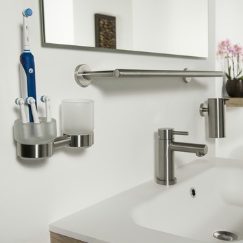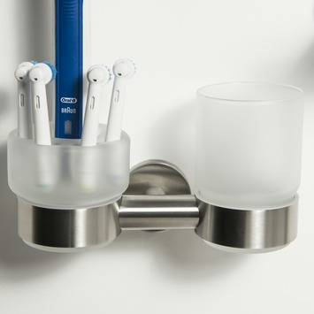 Bekerhouder is prima, maar het tandenborstel glas daar heb je niets aan.we hebben 2 soorten OralB elektrische borstels In huis, maar passen niet lekker. Vervangen door een tweede glas.