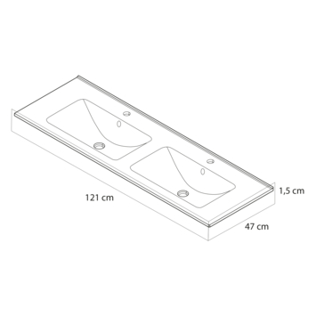 - Keramische wastafel met twee diepe waskommen