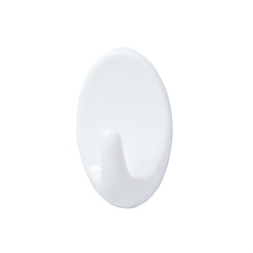 De kleine ovaal haak is uitgevoerd in wit kunststof en kan worden bevestigd met de gemonteerde plakstrip. Per 3 stuks verpakt.