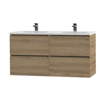 Tiger Karlo badkamermeubel 120 cm chalet eiken met wastafel hoogglans wit