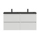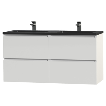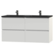 Het greeploze Tiger Karlo badkamermeubel is speciaal ontworpen voor de strakke en moderne badkamer. De wastafelonderkast heeft 2 ruime lades om alle badkamerspullen overzichtelijk in op te bergen. De lades zijn uitgerust met hoogwaardige 'soft close' geleiders waardoor ze geruisloos sluiten. Door de mooie heldere witte kleur krijgt het meubel een tijdloze uitstraling. De strakke, mat zwarte polybeton wastafel met immitatie natuursteen look maakt deze set compleet.