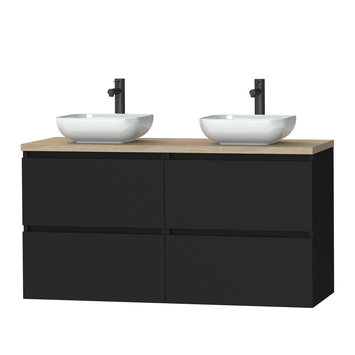 Tiger Karlo badkamermeubel 120cm Mat Zwart met eiken wasblad en keramische waskom