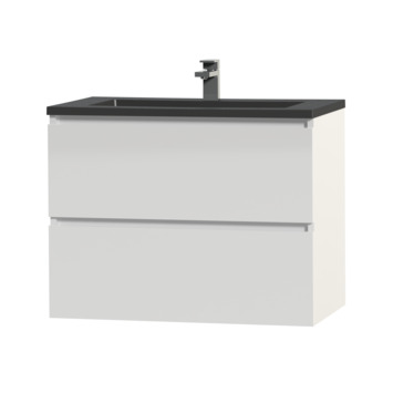 Tiger Karlo badkamermeubel 80 cm hoogglans wit met wastafel zwart blad
