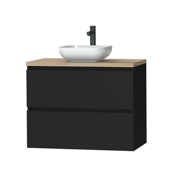Tiger Karlo badkamermeubel 80 cm mat zwart met eiken wasblad en keramische waskom