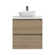 Tiger Karlo Badkamermeubelset 60 cm Chalet eik met wit houten wasblad en glanzend witte keramische waskom