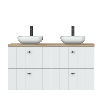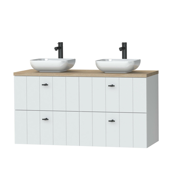 Tiger Maryport Badkamermeubelset 120 cm Mat wit met licht eiken houten wasblad, keramische opzetkom en matzwarte grepen