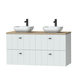 Landelijk design in een modern jasje. De Tiger Maryport wastafelonderkast van 120 cm in mat wit en licht eiken wasblad met voelbare houtnerf zorgt voor een luxe, sfeervolle look en houdt badkamer en geest opgeruimd. Deze volledig voorgemonteerde wastafelonderkast heeft 4 ruime lades met softclose geleiders om al je verzorgingsproducten overzichtelijk in op te bergen. De half voorgeboorde gaten voor de matzwarte grepen zorgen voor een eenvoudige montage. De look wordt compleet dankzij de afgeronde wit glanzende keramische opzetkommen. Deze zijn vrijwel onderhoudsarm, hygiënisch, krasvast en bestand tegen chemische middelen. Bij Tiger kijken we graag naar duurzaame materialen, want met verantwoord bosbeheer dragen wij ons steentje bij aan een groene toekomst. Maryport is niet alleen geproduceerd vanuit een duurzame grondstof maar gaat ook een lange tijd mee. De kast wordt geleverd inclusief bevestigingsmateriaal en een duidelijke handleiding. Zoek je meer meubels in de landelijke stijl? Voor een complete look combineer je deze set met een spiegel, een spiegelkast of kolomkast uit de Tiger Maryport meubelcollectie.