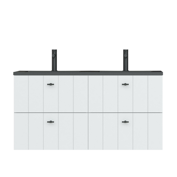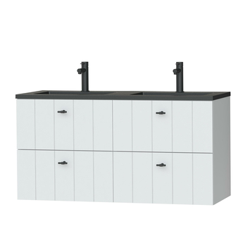 Tiger Maryport Badkamermeubelset 120 cm Mat wit met matzwarte polybeton wastafel en matzwarte grepen