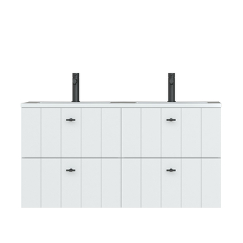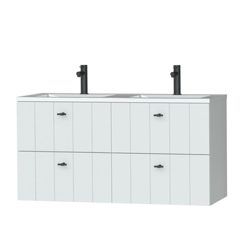 Tiger Maryport Badkamermeubelset 120 cm Mat wit met wit glanzende polybeton wastafel en matzwarte grepen