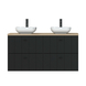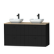 Tiger Maryport Badkamermeubelset 120 cm Mat zwart met licht eiken houten wasblad, keramische opzetkommen en matzwarte grepen