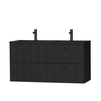 Tiger Maryport Badkamermeubelset 120 cm Mat zwart met matzwarte polybeton wastafel en matzwarte grepen