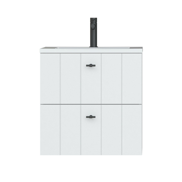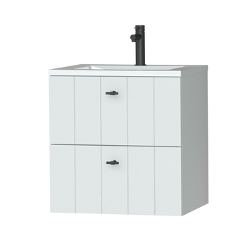 Tiger Maryport Badkamermeubelset 60 cm Mat wit met wit glanzende polybeton wastafel en matzwarte grepen