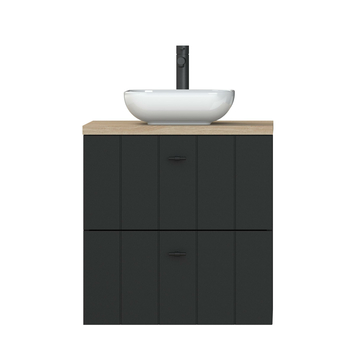 Tiger Maryport Badkamermeubelset 60 cm Mat zwart met licht eiken wasblad, keramische opzetkom en matzwarte grepen769.00
