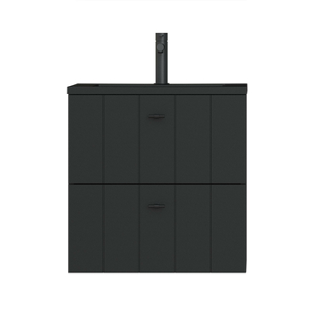 Tiger Maryport Badkamermeubelset 60 cm Mat zwart met matzwarte polybeton wastafel en matzwarte grepen