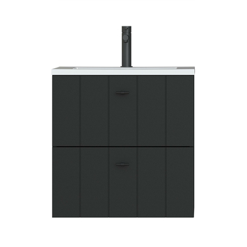 Tiger Maryport Badkamermeubelset 60 cm Mat zwart met wit glanzende polybeton wastafel en matzwarte grepen