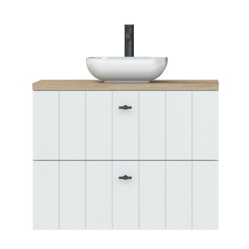 Tiger Maryport Badkamermeubelset 80 cm Mat wit met licht eiken wasblad, keramische opzetkom en matzwarte grepen
