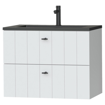 Tiger Maryport Badkamermeubelset 80 cm Mat wit met matzwarte polybeton wastafel en matzwarte grepen