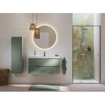 Met 80 cm breedte is deze wastafelonderkast geschikt voor veel badkamers. Het formaat is functioneel en overzichtelijk. mat groen zorgt voor een rustige kleur die goed samengaat met lichte materialen en houttinten. Dit maakt het meubel makkelijk te combineren.