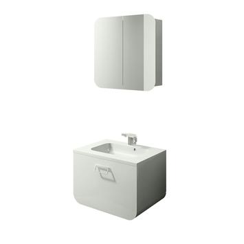 De Tiger Ontario badmeubelset wit 60cm bestaat uit een onderkast van 60cm breedte in wit hoogglans en een chroomkleurige greep. De onderkast heeft een lade met soft close scharnieren waardoor deze zacht en geruisloos sluit. Verder is de kast voorzien van een wit wastafelblad van polybeton en een vierkant spiegelpaneel van 60cm. Het meubel maakt deel uit van de Ontario-serie, bestaande uit kranen, badkamer- en doucheaccessoires en douchecabines in verschillende kleuren. Bij GAMMA vindt u diverse producten uit het Ontario-concept om zo uw badkamer in één stijl te completeren.