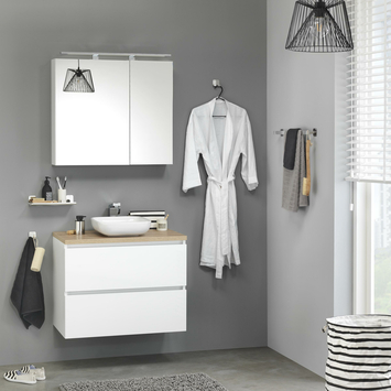 De Tiger Ontario waskom wit 35cm is uitgevoerd in wit keramiek. Deze witte waskom is goed te combineren met een houten wastafelblad en de verhoogde wastafelkraan uit de Ontario-serie. De waskom maakt deel uit van het Ontario-concept, dat onder meer bestaat uit kranen, badkamer- en doucheaccessoires en douchecabines. Bij GAMMA koopt u de verschillende producten uit de Tiger Ontario-serie om zo uw badkamer in één stijl te kunnen completeren.