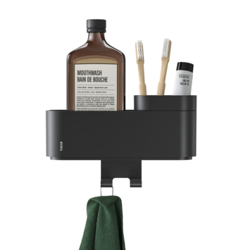 Het Tiger 2-store opbergbakje in het zwart is stijlvol, multifunctioneel en een antwoord op al je opbergproblemen. Haak voor je handdoek? Juist. Je tanden poetsen onder douche? Geen probleem. Dit opbergbakje uit de 2-Store serie is jouw antwoord op al je opbergproblemen en kan je zowel bij de wastafel als in de douche plaatsen. Het 2-store opbergbakje is tevens praktisch.Het bakje is goed schoon te houden dankzij de uitneembare inzet en er blijft geen water in het bakje staan dankzij de afwateringsgleuven. Tevens zorgt de stabilisatie aan de achterzijde ervoor de producten recht in het rekje blijven staan.