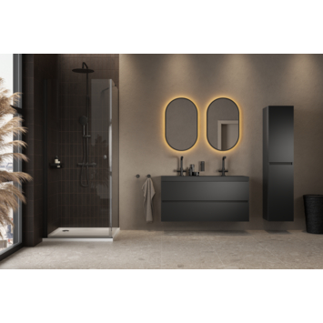 De Tiger T-line Quadro opbouwwastafel van 80 cm is ontworpen voor comfortabel en praktisch gebruik. Het polybeton heeft een strak, egaal oppervlak met een steenachtige uitstraling en is hygiënisch en eenvoudig schoon te houden. De diepe waskom voorkomt gespetter en biedt voldoende ruimte tijdens gebruik. Dankzij het ene kraangat en de externe overloop is de wastafel geschikt voor een standaard opstelling. De matzwarte afwerking en het bredere formaat maken deze wastafel geschikt voor diverse moderne badkamers.