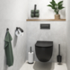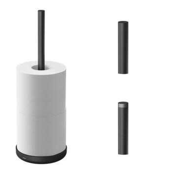 De matzwarte vrijstaande reserverolhouder uit de Orion serie wordt geleverd met twee eindkapjes: één in gunmetal en één in zwart, zodat je eenvoudig een subtiel accent aan je accessoire kunt toevoegen. De Orion serie biedt een uitgebreid assortiment aan aanvullende accessoires in dezelfde stijl, waardoor je een samenhangende en elegante uitstraling in je badkamer of toiletruimte kunt creëren.