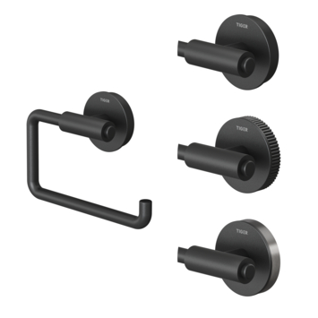 Ervaar de veelzijdigheid van de Orion toiletrolhouder uit de Tiger serie! Deze houder heeft een elegante matzwarte afwerking en wordt geleverd met twee stijlvolle decorringen: één met een zwarte ribbelstructuur en één in gunmetal. Op die manier kun je eenvoudig een subtiel accent aan je badkameraccessoire toevoegen.