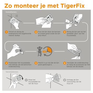 - Muurbevestiging d.m.v. schroeven of Tigerfix 1
