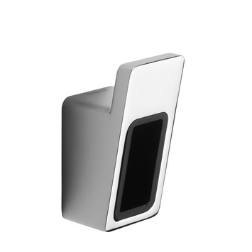 De rectangular haak is uitgevoerd in chroom met zwarte accenten en dient te worden bevestigd met meegeleverde schroeven.