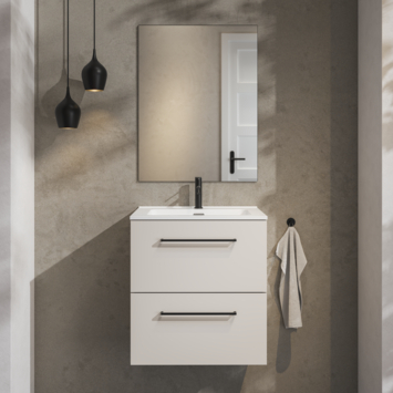 Op zoek naar een stijlvolle upgrade voor jouw badkamer? Ontdek de Reef badkamermeubelset in 60 cm iin de trendy kleur mat greige.De matte afwerking en de subtiele greige tint zorgen voor een warme, tijdloze look die goed combineert met verschillende stijlen. Dankzij de ruime lades met softclose systeem ervaar je extra comfort, elke dag weer. Geproduceerd in Europa en voorzien van stijlvolle grepen: een combinatie van kwaliteit en design waar je blij van wordt.