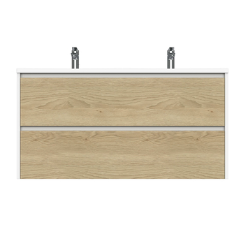 Tiger Reverse Meubelset 120 cm met 2 lades Naturel eik / Mat wit inclusief Quadro wastafel dubbel Hoogglans wit1.049.00