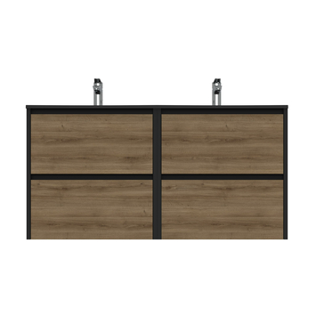 Tiger Reverse Meubelset 2x60 cm met 4 lades Chalet eik / Mat zwart inclusief 2 Oval wastafels Mat zwart