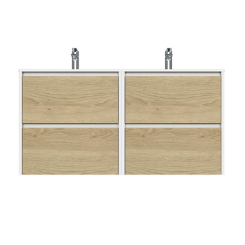 Tiger Reverse Meubelset 2x60 cm met 4 lades Naturel eik / Mat wit inclusief 2 Oval wastafels Hoogglans wit