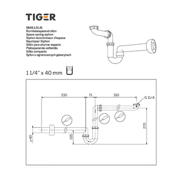 De Tiger sifon 1 kwartrond kunststof wit 40mm is ruimtebesparend. Dankzij dit sifon is een uitsparing niet nodig, zodat u extra opbergruimte in de lade of kast houdt.