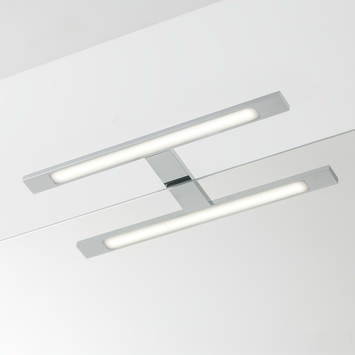 De Tiger Spiegelverlichting Ancis Chroom 40 cm is een strakke designlamp die je badkamer voorziet van luxueus licht. De Ledlamp met een lichtopbrengst van 520 Lumen voorziet je van het nodige licht bij het scheren of aanbrengen en verwijderen van make-up. De lichtkleur van 4000 Kelvin, die overeenkomt met daglicht, wordt bovendien aangeraden door visagisten. Met de energiezuinige LEDlamp die slechts een verbruik heeft van 5 Watt en een levensduur van 20.000 branduren is deze spiegellamp een zeer economische aankoop. De lamp is vocht- en corrosie bestendig en IP44 bestendig tegen spattend water boven de wastafel. Door de geïntegreerde transformator is deze spiegellamp direct aan te sluiten op het lichtnet. Monteerbaar bovenop (spiegel)kast of kolomkast.