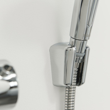 Met deze houder kun je je douchekop ergens anders hangen. Dat hebben we bij mijn moeder gedaan die een douchestoel ging gebruiken. Zo kan ze vanuit de stoel de douchekop pakken.