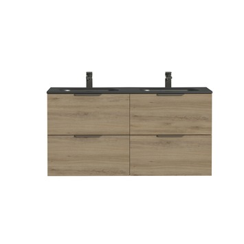 Tiger Studio badkamermeubel 120 cm chalet eiken met wastafel dubbel polybeton mat mat zwart greep rvs plat1.549.00