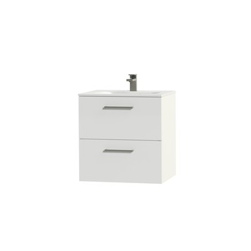 Tiger Studio badkamermeubel 60 cm hoogglans wit met wastafel polybeton mat wit greep rvs rechthoekig