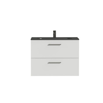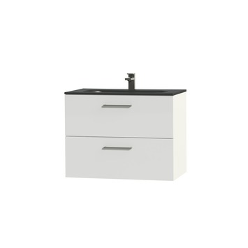 Tiger Studio badkamermeubel 80 cm hoogglans wit met wastafel polybeton mat zwart greep rvs rechthoekig