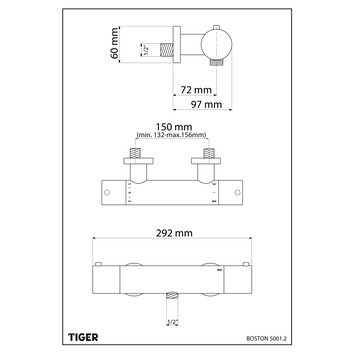 Automatische stop van warm water bij wegvallen van de koud watertoevoer, Keramische schijven, Kindveilig (De Tiger Thermostatische Douchekraan Boston RVS 15 cm wordt nooit heter dan de ingestelde temperatuur), 5 jaar garantie, Anti kalk cartridge.
