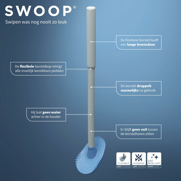 Een fris en modern gevoel in toilet of badkamer dankzij de witte wc-borstelhouder van Tiger Tess. Deze vrijstaande houder is voorzien van de nieuwe Swoop® flexibele toiletborstel. Met deze innovatieve borstelkop reinig je met gemak moeilijk bereikbare plekken en dankzij de vorm en het speciale materiaal van de borstel blijft er geen viezigheid achter en druppelt hij nauwelijks na als je hem terug in de houder plaatst. Draai de houder om en de borstel is niet langer meer in het zicht. Tiger Tess is innovatief en eigentijds met de herkenbare kwaliteit van Tiger.