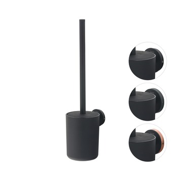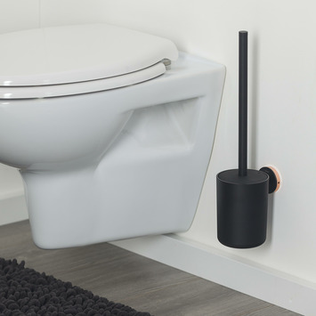 Mooie toiletborstel, mat zwart en je kunt kiezen of je een zwarte ring of koperkleurige ring gebruikt. Ook een mooi formaat, niet te groot.