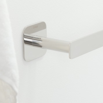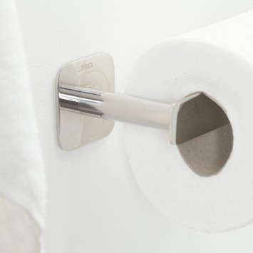 De Tiger Toiletrolhouder Colar L Chroom is uitgevoerd in gepolijst (glans) rvs. De toiletrolhouder is voorzien van een krachtige dubbelzijdige tape waardoor montage op iedere gladde, stevige ondergrond zeer eenvoudig is. De Colar serie bevat tevens meerdere varianten van de toiletrolhouder, maar ook een groot aantal aanvullende accessoires voor de badkamer en toiletruimte in dezelfde stijl. Alle artikelen uit de Colar serie zijn ook verkrijgbaar rvs geborsteld.