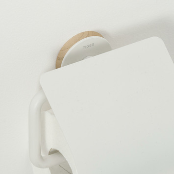 De Tiger Toiletrolhouder Urban Wit met Klep is uitgevoerd in de kleur mat wit en wordt geleverd met twee decorringen. De decorringen, in de kleur licht eiken en grijs, maken het mogelijk een subtiel kleuraccent toe te voegen. Het is ook mogelijk de toiletrolhouder zonder de decorring te monteren waardoor het zeer eenvoudig is om het product aan de gewenste stijl aan te passen. Bij de montage van het artikel wordt gebruik gemaakt van een muurplaatje waardoor de bijgeleverde bevestigingsmaterialen uit het zicht verdwijnen. De Urban serie bevat tevens een toiletrolhouder zonder klep, maar ook een groot aantal aanvullende accessoires voor de badkamer en toiletruimte. Alle in dezelfde stijl. De artikelen uit de serie zijn ook in de kleur mat zwart verkrijgbaar, waarbij natuurlijk ook weer diverse decorringen worden meegeleverd. De toiletrolhouder is tevens geschikt voor montage met TigerFix type 1, waarmee accessoires snel en eenvoudig op een gladde, harde ondergrond te bevestigen zijn door middel van een gepatenteerd lijmsysteem. Boren is niet noodzakelijk en de accessoires zijn eenvoudig te verwijderen zonder dat er resten op de ondergrond achterblijven. TigerFix is los verkrijgbaar.