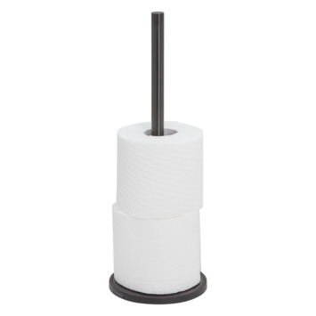 De vrijstaande reserverolhouder uit de Tune serie van Tiger is uitgevoerd in de kleuren geborsteld zwart metaal en mat zwart. Met deze houder kun je drie extra rollen toiletpapier opbergen naast je toilet. De Tune serie bevat een groot aantal aanvullende accessoires voor de badkamer en het toilet.