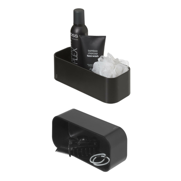 Schuif het bakje op het muurplaatje en je kunt altijd afwisselen. Het wandbakje is gemaakt van kunststof en kan dus niet roesten. Door de waterafloop onderin kun je het bakje gemakkelijk schoonhouden zodat het douchemandje jarenlang mooi blijft. De zwarte kleur geeft een stoere twist aan je badkamer en is makkelijk te combineren met andere accessoires.